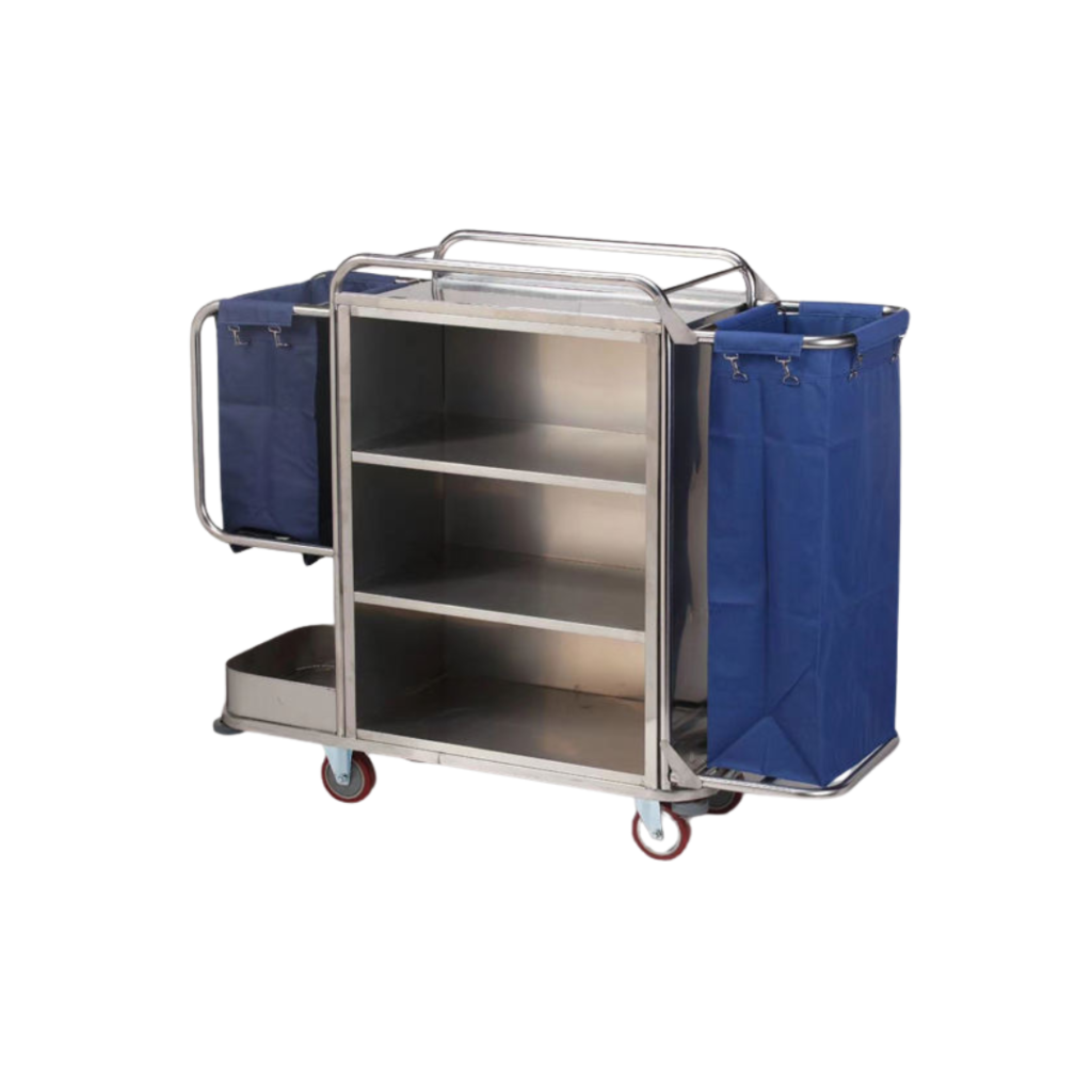 Without Door Housekeeping Trolley 2 Bags (Stainless Steel)